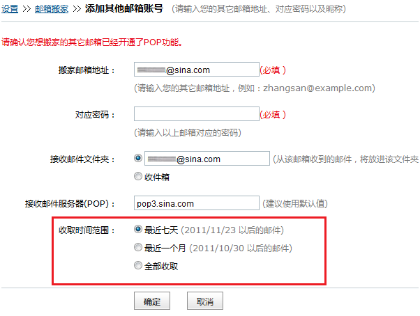 本次更新后,在Webmail的邮箱搬家功能中,可设置收取邮件的时间范围,系统默认选择为收取最近7天的邮件。